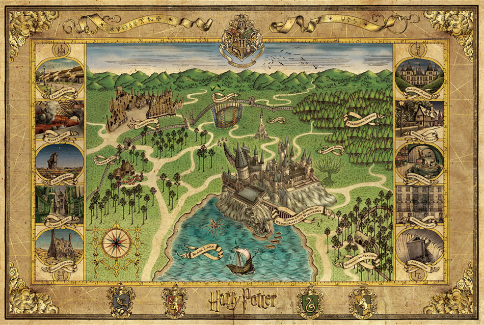 Guarda o Banheiro dos Monitores, Topo da Torre do Relógio, entrada para o Salão Comunal da Ravenclaw;